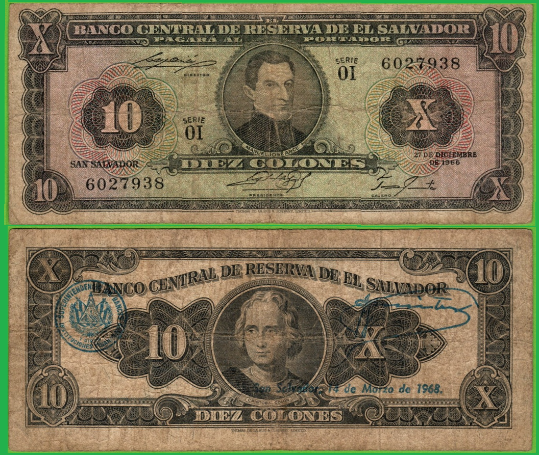 El Salvador 10 colones 1966, P-103a Prefix-OI Vf