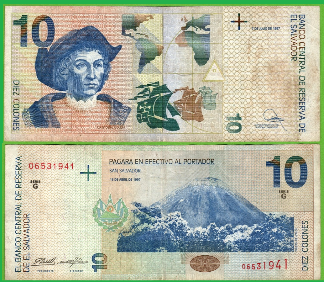 El Salvador 10 Colones 1997, P-148a Prefix-G VF