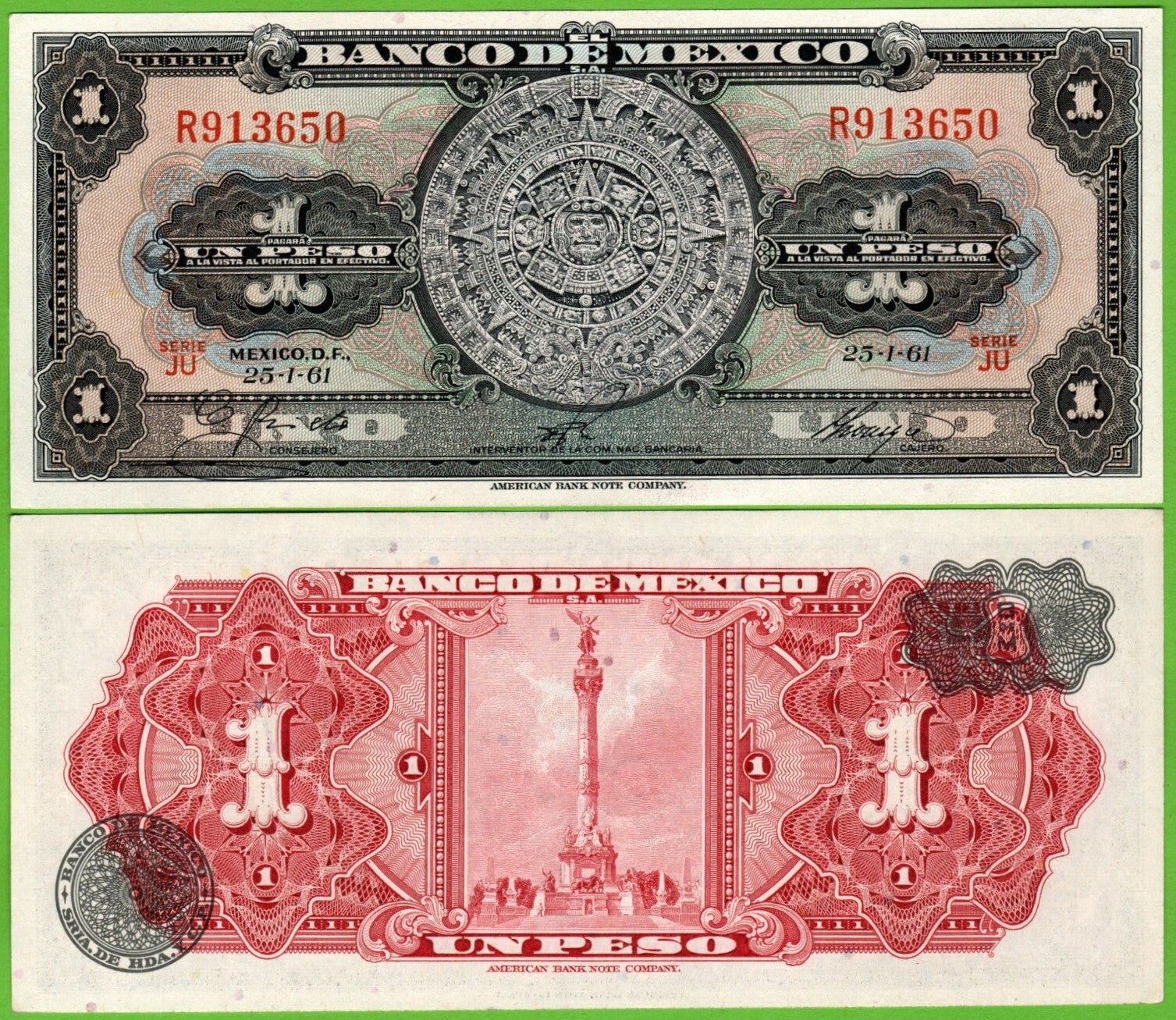 Mexico 1 peso 1961, P-59G Prefix-JU Unc